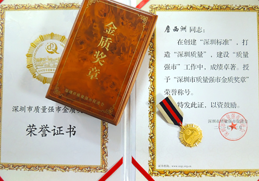 “深圳市質(zhì)量強(qiáng)市金質(zhì)獎(jiǎng)?wù)?rdquo;于2013年設(shè)立,是深圳市最高個(gè)人質(zhì)量榮譽(yù)。授予在打造“深圳質(zhì)量”、“深圳標(biāo)準(zhǔn)”、推進(jìn)“質(zhì)量強(qiáng)市”過程中做出突出貢獻(xiàn)的深圳企業(yè)/組織的主要負(fù)責(zé)人,每年度評選一次,每年度獲獎(jiǎng)名額不超過10名。“金質(zhì)獎(jiǎng)?wù)?rdquo;參評申請人所在企業(yè)必須通過深圳市質(zhì)量強(qiáng)市骨干企業(yè)的認(rèn)定或獲得區(qū)以上(含區(qū))政府質(zhì)量獎(jiǎng);所在企業(yè)為行業(yè)質(zhì)量標(biāo)桿或領(lǐng)軍企業(yè),近3年企業(yè)主要經(jīng)濟(jì)指標(biāo)列處行業(yè)前列等多項(xiàng)入圍條件。