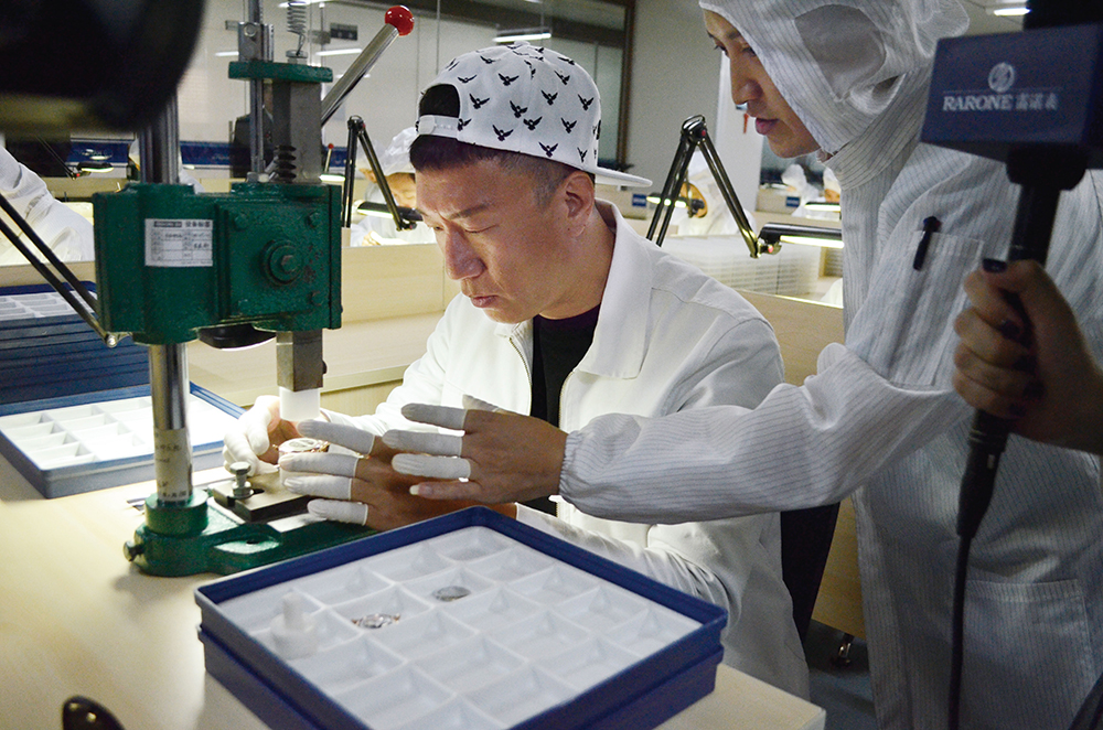 直播當天,孫紅雷一身帥氣、時尚休閑裝,和秋高氣爽的深圳十分搭配。雷雷作為雷諾家人,對手表的設計文化以及工藝興趣濃厚,在雷諾表董事長詹西洲先生、總經理詹江洲先生及總經理詹省洲先生一行的帶領下,參觀了雷諾表的設計研發中心和制造中心,調皮的孫漂亮在雷諾表設計手稿寫下“洪荒之力”四字,并在無塵裝配車間為即將贈送給粉絲的情侶腕表合上后蓋。在體驗了如此精密的手表裝配工作后帥雷雷直呼過癮!看得出孫紅雷這次為粉絲圓夢可謂做足功夫,誠意滿滿!