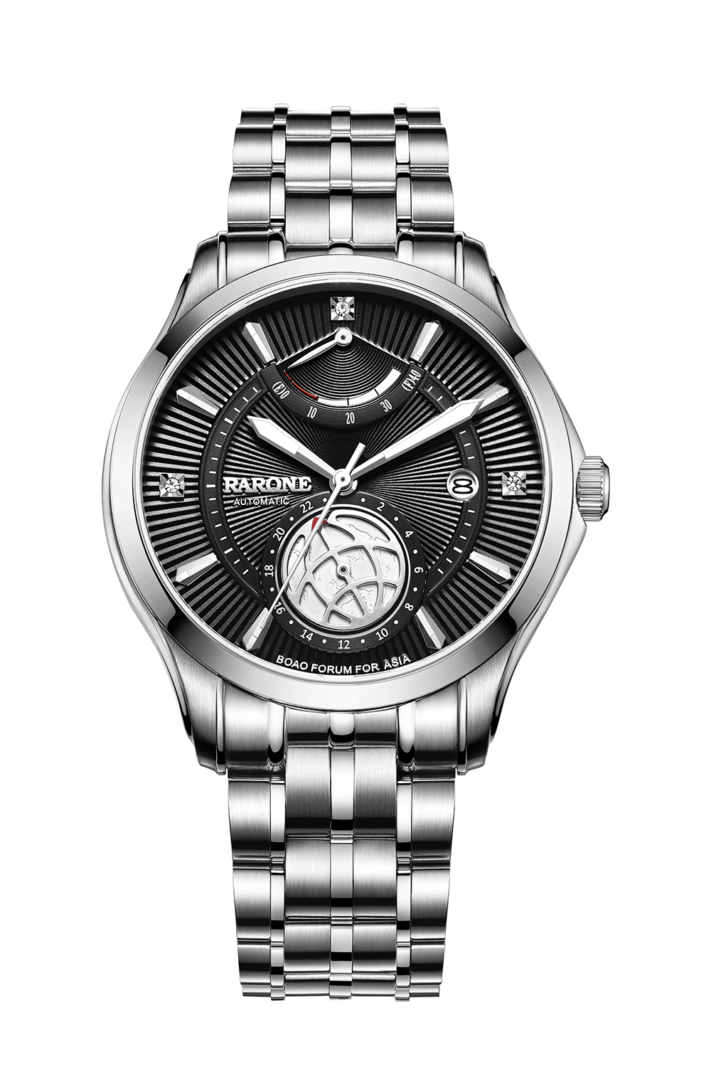 “博鰲·鼎智系列”是雷諾表專門為博鰲亞洲論壇的政商精英而設計的。雷諾表從2009年起成為博鰲論壇官方商務禮賓用表,至今已連續(xù)合作7年。12時位40小時動力儲存顯示,飛返式指針顯示能量,隨時掌控機械機心動力余量;6時位鏤空地球經(jīng)緯度指針,底紋為亞洲地圖,24小時功能,每24小時轉(zhuǎn)一圈,與地球自轉(zhuǎn)1圈時間同步,意義非凡。