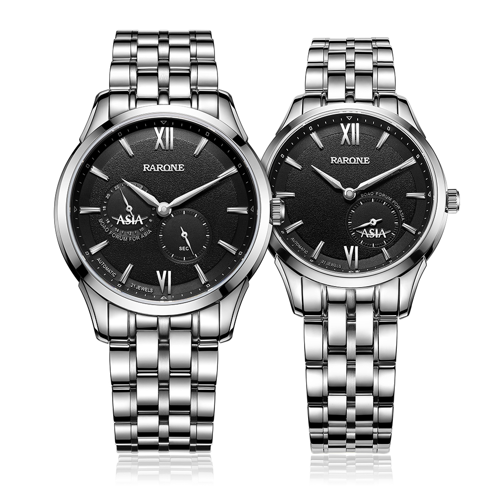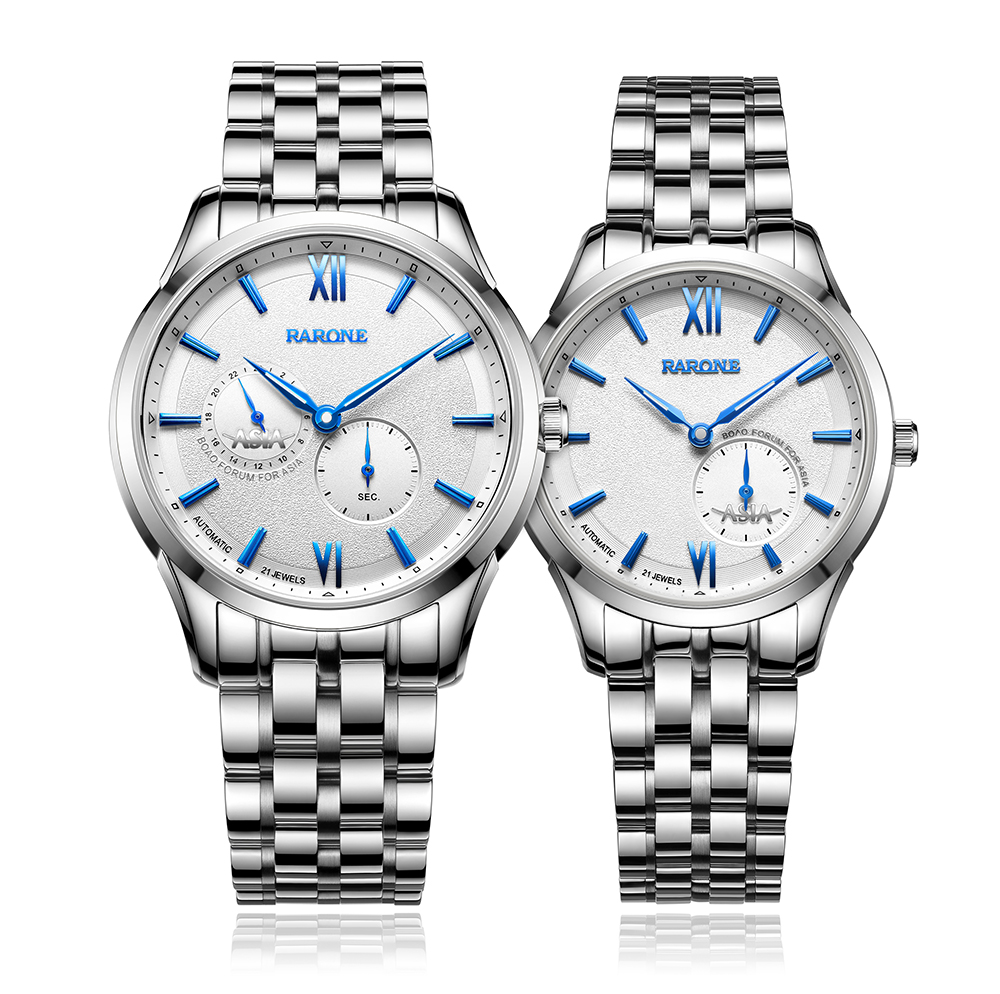2016年新品以男女對(duì)表形式呈現(xiàn),搭載進(jìn)口全自動(dòng)機(jī)械機(jī)芯,透視底蓋清晰可見機(jī)芯運(yùn)作。男女表在設(shè)計(jì)細(xì)節(jié)上做了區(qū)別,更加匹配男女士對(duì)美的不同追求。除了經(jīng)典的黑色,間金色之外,新款首次采用鋼藍(lán)色表針和字釘,為商務(wù)用表融入活力元素,同時(shí)視覺上更加清爽。大兩針搭配60秒功能小眼顯示時(shí)間,為當(dāng)下手表的熱門設(shè)計(jì),男表9時(shí)位增加一個(gè)24小時(shí)功能小盤,方便知曉和調(diào)教多維度時(shí)間。表盤上的“ASIA”標(biāo)識(shí)體現(xiàn)腕表的身份和紀(jì)念價(jià)值。
