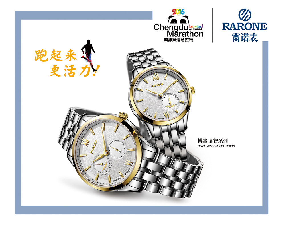雷諾表作為商務手表領域的專業(yè)品牌,倡導職場人士8小時之外的健康生活,而跑步就是最簡單、最容易參與的運動方式。2016年3月,雷諾表牽手天府之國——四川,正式成為2016年“成都雙遺馬拉松官方指定計時用表”!