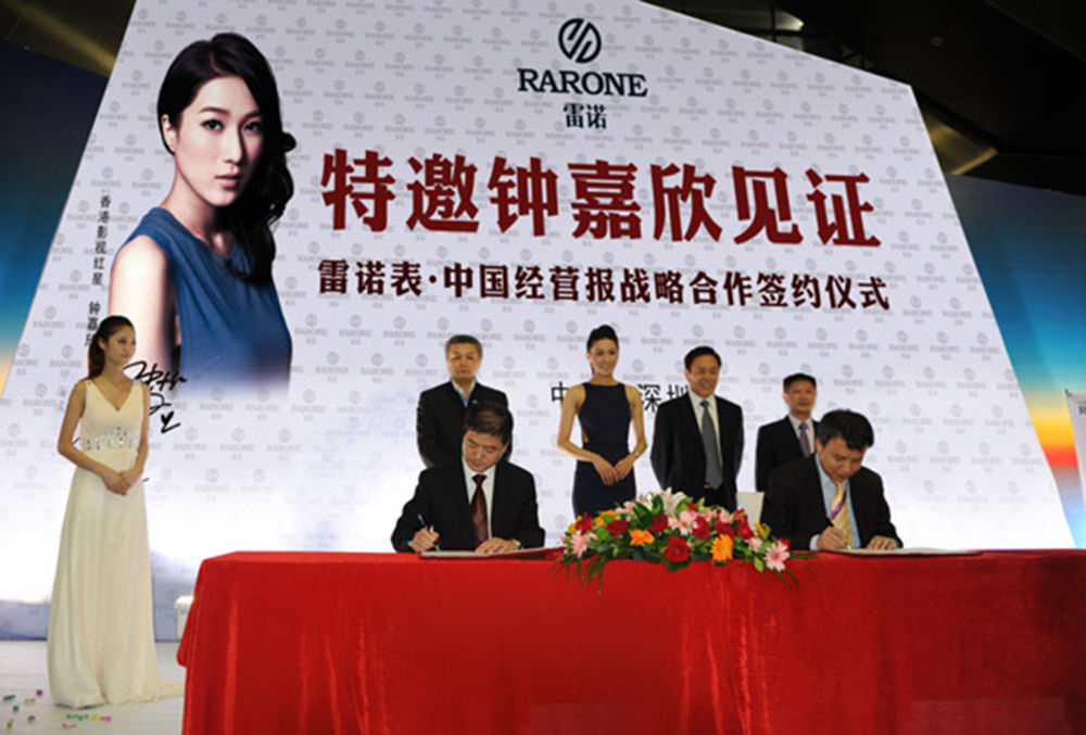 6月29日,雷諾表與《中國經(jīng)營報》簽訂戰(zhàn)略合作協(xié)議,首次成就鐘表品牌與商務(wù)媒體的強勢結(jié)合。同時盛邀香港當(dāng)紅影星鐘嘉欣出席儀式,共同見證雷諾表又一品牌推廣戰(zhàn)略盛事。