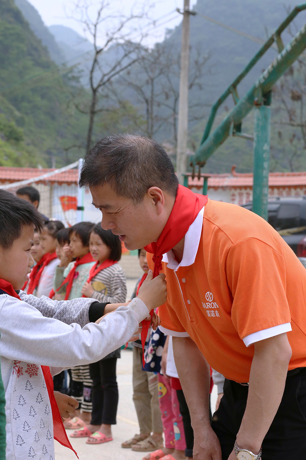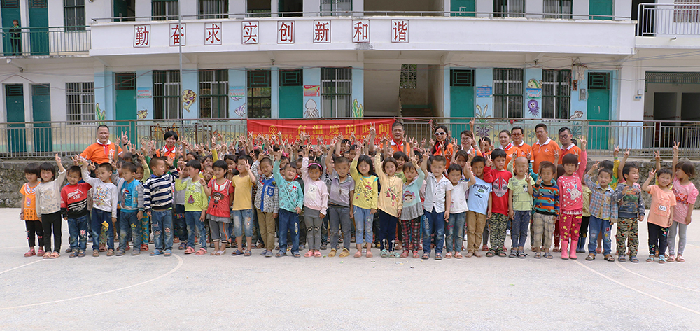 雷諾表愛心小組在總經(jīng)理詹江洲先生的帶領(lǐng)下,從南寧市區(qū)出發(fā),一路上綠水青山風(fēng)景秀美,但在快要到達(dá)同社村的山路上,我們真正見識了九曲十八彎的大山路。經(jīng)過3個多小時的長途跋涉,我們的愛心車輛終于抵達(dá)同社村小學(xué),遠(yuǎn)遠(yuǎn)就看到學(xué)校的孩子在校門口等待我們,當(dāng)孩子們親手為我們系上鮮艷的紅領(lǐng)巾,雷諾表愛心小組的每個成員的使命感愈加強(qiáng)烈。