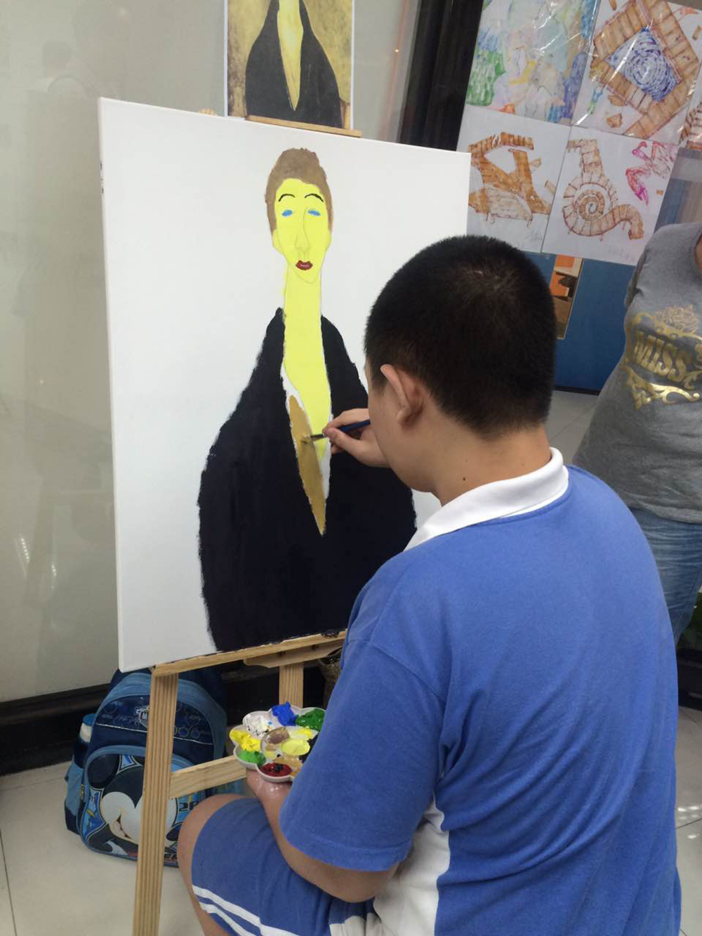繪畫老師說:這批孩子雖然繪畫功底不一,但拿起畫筆來都十分投入。比起普通學繪畫的孩子,他們的下筆更加果斷,不受條條框框約束,敢于畫出自己的所思所想,這是非常可貴的。作為老師我們要更多地在情感上和孩子們進行交流,還要保留他們創(chuàng)作的個性。”